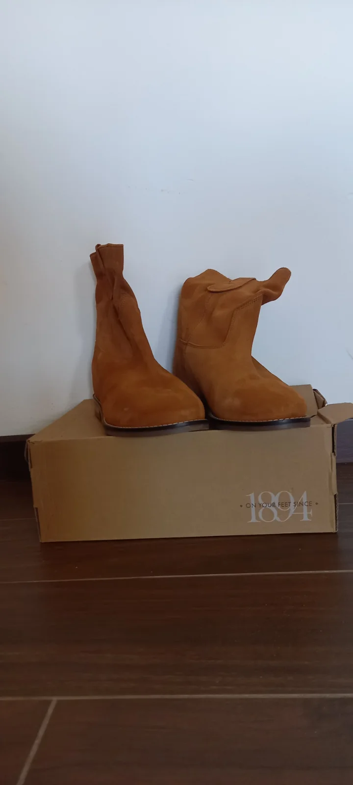 Stivaletti eleganti in camoscio sabbia con design alla moda e punta arrotondata. Ideali per look autunnali e primaverili.