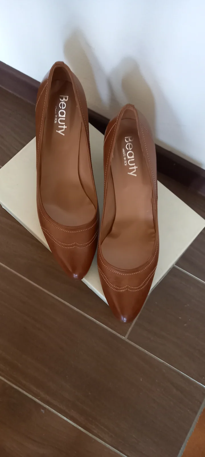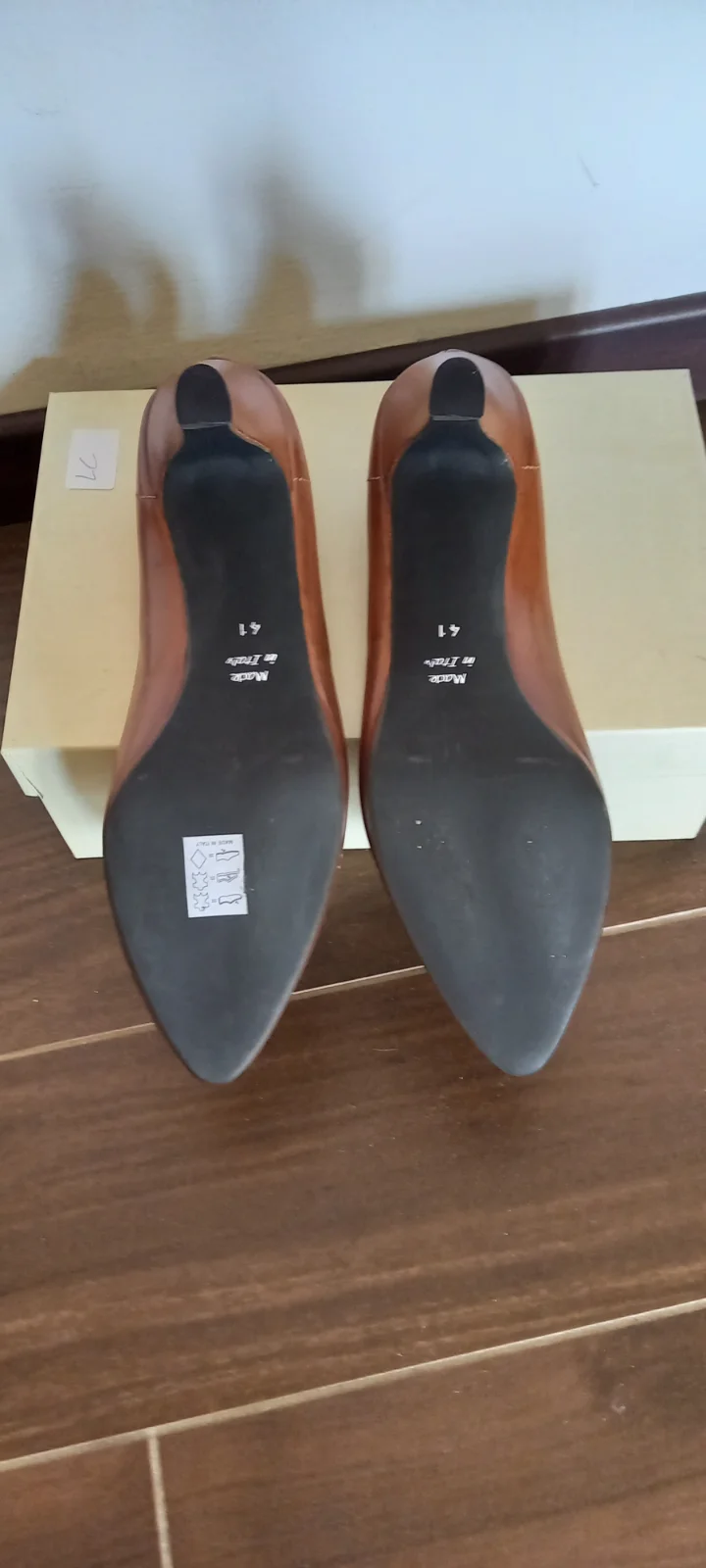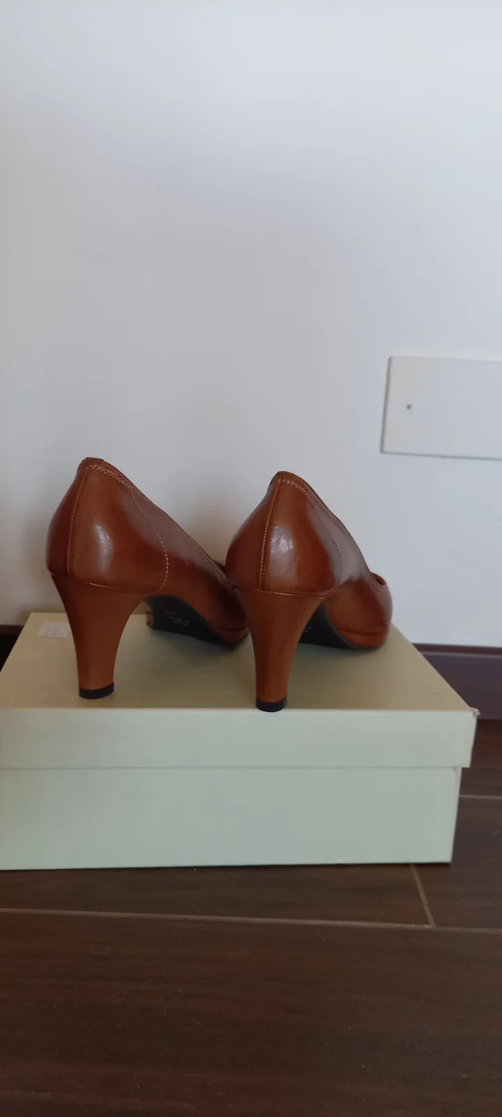 Scarpe décolleté in pelle marrone con punta affusolata e tacco sottile di 8 cm. Eleganti e comode per occasioni speciali.
