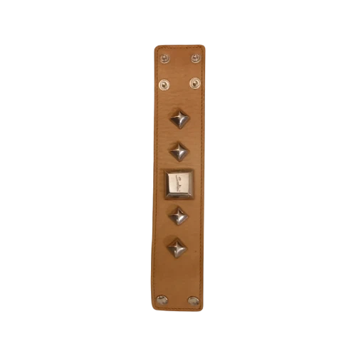 Bracciale/polsino in pelle cuoio con borchie metalliche.