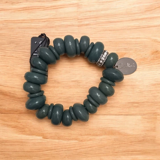 Braccialetto elastico con perle irregolari e dettagli strass.