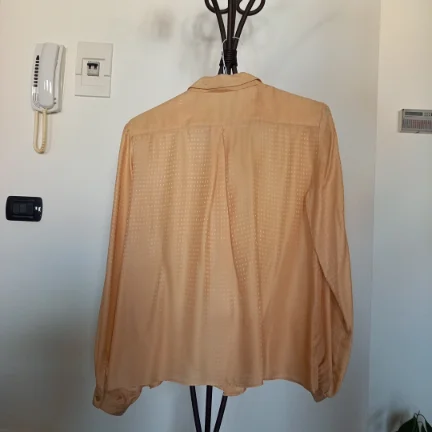 Camicia vintage a quadretti con fiocco e maniche lunghe. Taglia I 48.