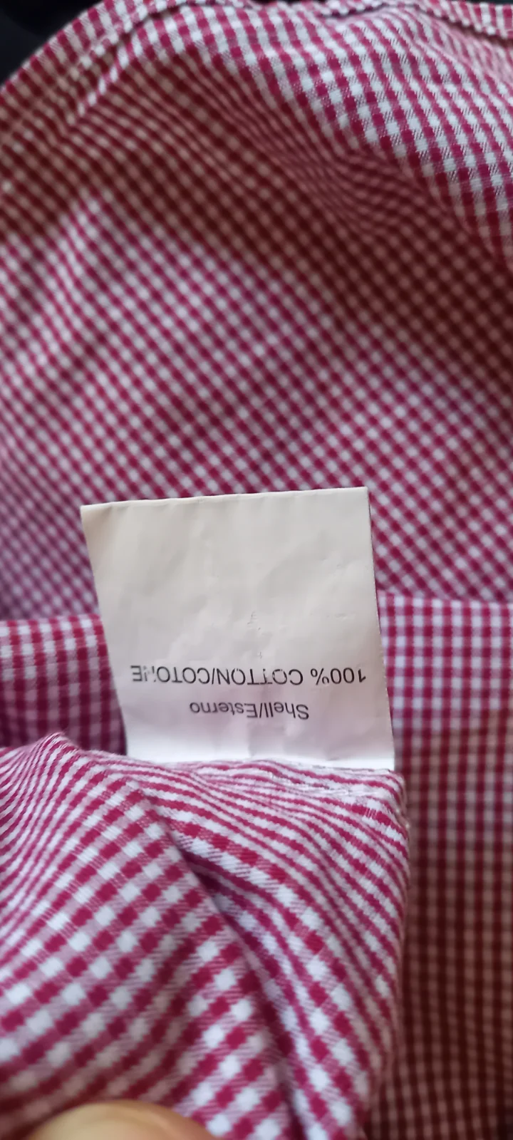 Camicia con classico motivo a quadri rossi e bianchi, logo ricamato sul petto e tessuto in cotone. Misure: spalle 44 cm, sottospalla 53 cm, lunghezza 71 cm, maniche 63 cm.