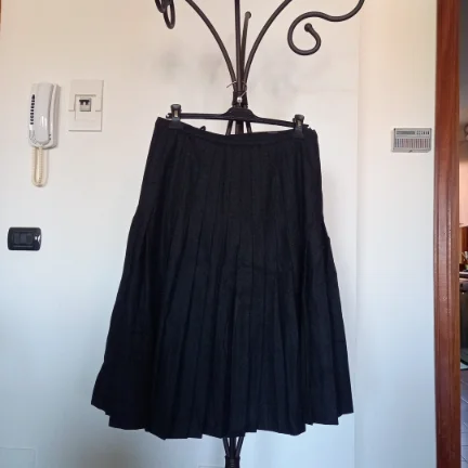 Un capo vintage che richiama il fascino degli anni passati: gonna a ruota in lana, ideale per un look rétro e femminile. Con una circonferenza di 40 cm e lunghezza di 70 cm (taglia I 50), veste in modo elegante valorizzando la silhouette. Perfetta da abbinare a camicette o top dal gusto classico, è un pezzo unico che dona carattere e stile.