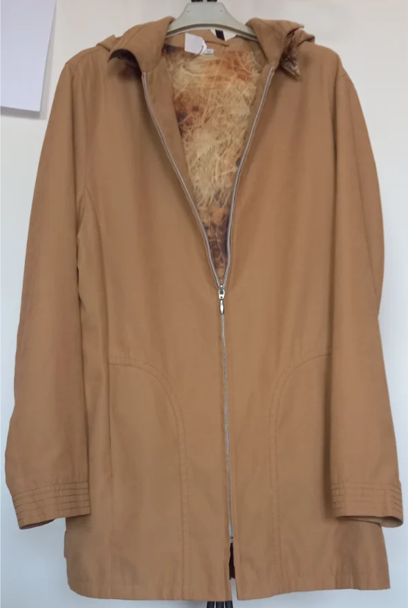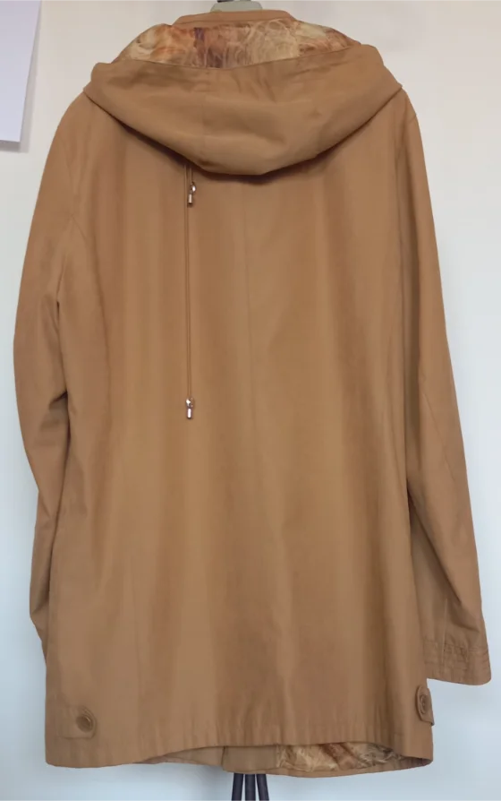Giacca vintage con cappuccio e zip, perfetta per la mezza stagione. Taglia 48.