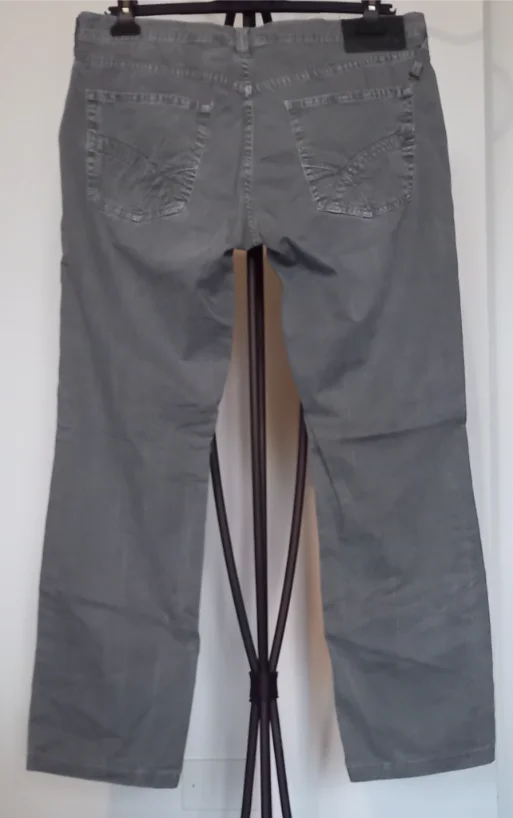Pantaloni in tessuto con chiusura zip e bottone, tasche anteriori e posteriori. Brand GAS. Misure: circonferenza 44 cm, lunghezza 92 cm.