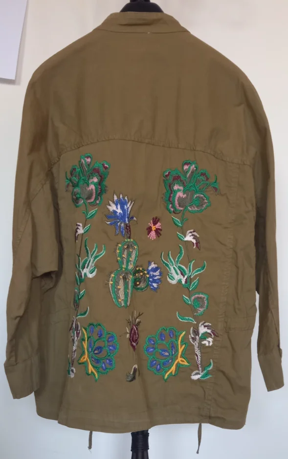 Giacca vintage con stampa floreale sul retro. Taglia L.