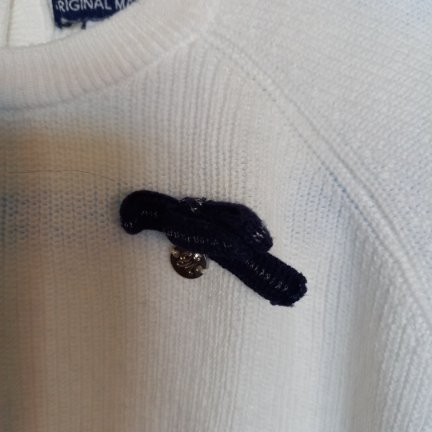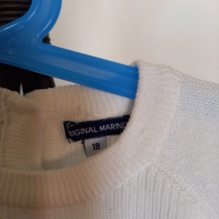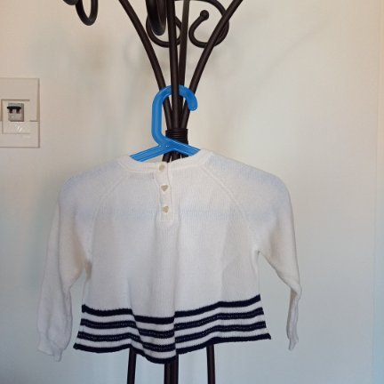 Maglione con bottoni sul retro e dettagli a righe navy. 18 mesi.