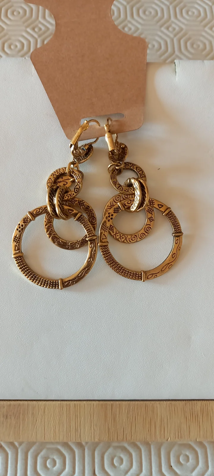 Orecchini a doppio cerchio con dettagli incisi.