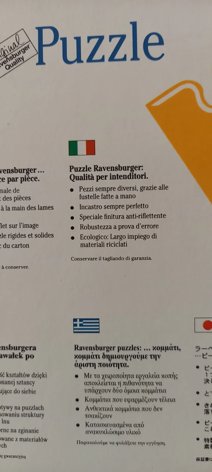 Dimensioni puzzle completo: 49 × 36 cm. Età consigliata: 6+.
