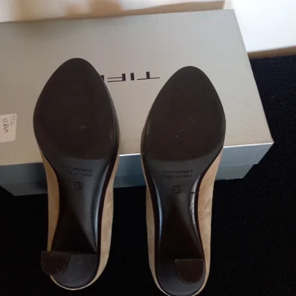 Scarpa elegante in camoscio sabbia, con punta affusolata e tacco alto ma comodo, pensata per valorizzare la silhouette e slanciare la figura. La nuance beige la rende perfetta da abbinare ad abiti da cerimonia o look serali sofisticati. Un modello raffinato che unisce classe e praticità, disponibile in un unico esemplare taglia 35.