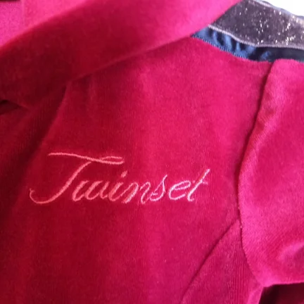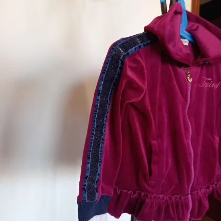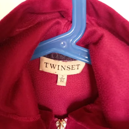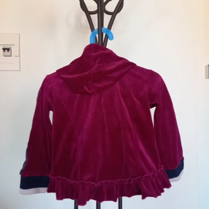 Felpa Twinset in morbido velluto vinaccia, impreziosita da dettagli in velluto blu scuro sulle maniche e rifiniture in pizzo sul fondo. Con cappuccio e vestibilità comoda, è ideale per affrontare la stagione autunno/inverno con stile. Un capo unico che unisce comfort e femminilità, perfetto per le più piccole (taglia 2 anni – 92 cm).